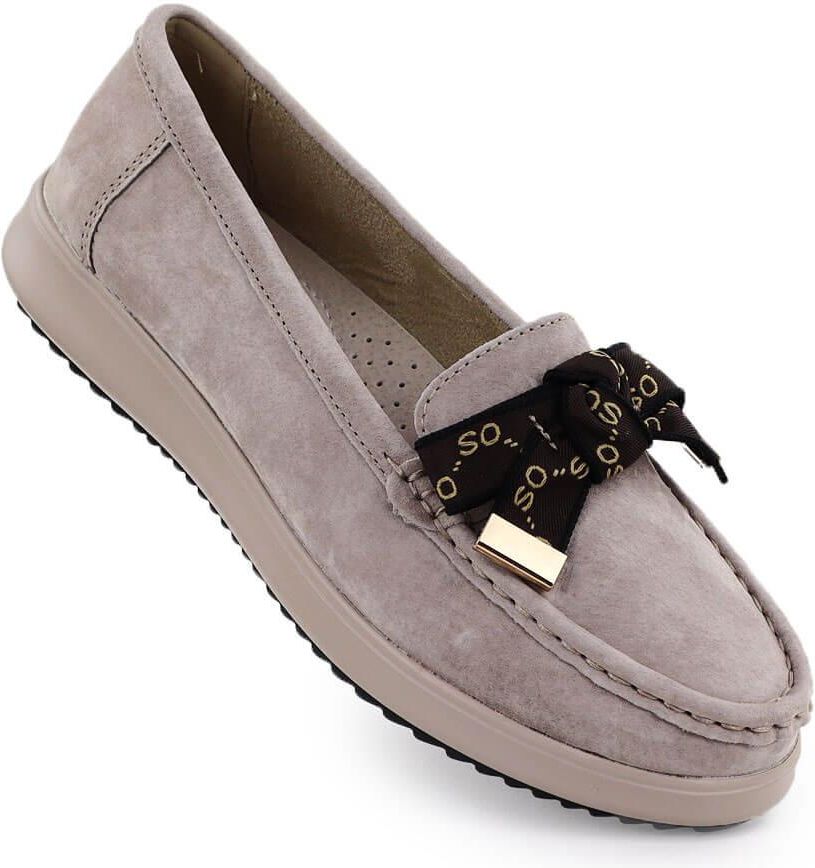 Skórzane mokasyny zamszowe z kokardą beżowe Filippo DP6457 Solec Kujawski
