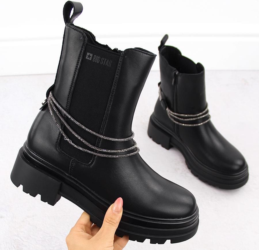 Szalenie modne botki to najnowsza propozycja marki BIG STAR. Obuwie charakteryzuje jakość wykonania i komfort użytkowania. Wyściółka oraz wkładka są ocieplone przyjemnym w dotyku futerkiem. Cyrkoniowa opaska jest zdejmowana.