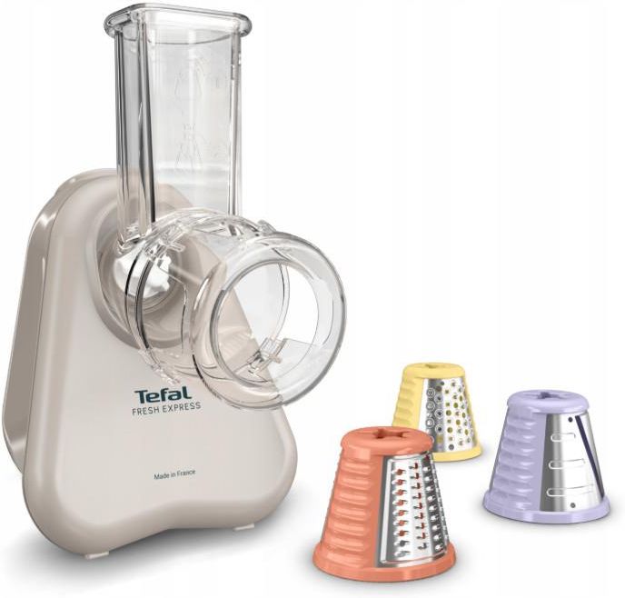 TEFAL Fresh Express DN853BE0 Szatkownica TEFAL Fresh Express DN853BE0 to kompaktowe, a jednocześnie niezwykle wszechstronne urządzenie, które ułatwia codzienne przygotowywanie posiłków. Dzięki mocy 150 W i trzem funkcjom w jednym sprzęcie - tarciu, krojeniu i siekaniu - szybko poradzisz sobie z warzywami, owocami czy serem. Wygodne serwowanie bezpośrednio do miski pozwala znacznie ograniczyć ilość naczyń do mycia, co czyni pracę w kuchni szybszą i bardziej komfortową. To idealne rozwiązanie dla rodzin, osób zapracowanych oraz wszystkich miłośników zdrowego gotowania. Zaprojektowana dla wygody i oszczędności miejsca Fresh Express została stworzona z myślą o kuchniach, w których liczy się każdy centymetr przestrzeni. Jej ultrakompaktowe rozmiary sprawiają, że zmieści się nawet w małej szafce, a sprytny system przechowywania pozwala schować końcówki i przewód wewnątrz urządzenia. Funkcja Direct-Serve umożliwia krojenie składników bezpośrednio do miski lub na talerz, co nie tylko przyspiesza gotowanie, ale też znacząco ułatwia utrzymanie porządku. Dodatkowo akcesoria są przystosowane do mycia w zmywarce, dzięki czemu sprzątanie zajmuje dosłownie chwilę. Bezpieczna, trwała i zawsze gotowa do działania Urządzenie wyróżnia się nie tylko funkcjonalnością, ale również solidną konstrukcją i bezpieczeństwem użytkowania. Innowacyjny system wentylacji chroni silnik przed przegrzaniem, zapewniając długą żywotność i niezawodność nawet przy częstym używaniu. Fresh Express została opracowana zgodnie z wysokimi standardami jakości, a 15-letnia gwarancja naprawy podkreśla dbałość producenta o trwałość urządzenia. To idealny wybór dla świadomych konsumentów, którzy szukają sprzętu na lata — łatwego w obsłudze, szybkie w czyszczeniu i niezawodnego w codziennym gotowaniu.