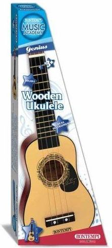 Bontempi Ukulele Drewniane Zabawki muzyczne odgrywają kluczową rolę w rozwijaniu zainteresowań artystycznych u dzieci. Bontempi Ukulele Drewniane to doskonały wybór dla najmłodszych muzyków, oferujący im radość z tworzenia dźwięków oraz możliwość rozwijania swoich umiejętności muzycznych. Instrument ten łączy w sobie estetykę, trwałość oraz wysoką jakość dźwięku, co czyni go idealnym towarzyszem w muzycznej przygodzie maluchów. Rodzaj i materiał wykonania Bontempi Ukulele to klasyczny instrument muzyczny, stworzony z myślą o najmłodszych. Jego konstrukcja wykonana z wysokiej jakości drewna zapewnia nie tylko estetyczny wygląd, ale również trwałość i doskonałą jakość dźwięku. Użycie drewna w produkcie sprawia, że instrument jest odporny na uszkodzenia, co jest istotne w przypadku intensywnego użytkowania przez maluchy. Cztery struny, które wyposażono w instrument, pozwalają na wydobycie realistycznych dźwięków, co z pewnością zachwyci każde dziecko. Zalecany wiek Instrument przeznaczony jest dla dzieci poniżej 3. roku życia. Dzięki temu, że zabawka jest dostosowana do najmłodszych, rodzice mogą mieć pewność, że zabawa z nią będzie bezpieczna i rozwijająca. To idealne rozwiązanie dla maluchów, które chcą rozpocząć swoją muzyczną przygodę w odpowiednim czasie. Funkcje muzyczne Bontempi Ukulele oferuje różnorodne funkcje, które sprawiają, że zabawa z tym instrumentem jest jeszcze ciekawsza. Oto kluczowe cechy, które wyróżniają ten produkt: realistyczny dźwięk, wysokiej jakości drewno umożliwia wydobycie autentycznych tonów, cztery struny, dzięki nim maluchy mogą uczyć się podstawowych akordów i melodii, przestrajalność, instrument pozwala na dostosowanie dźwięków do indywidualnych preferencji, zestaw z plektronem, dodatkowy element, który ułatwia naukę gry na instrumencie, kompaktowe wymiary, ułatwiają transport i zabawę w różnych miejscach. Interaktywność Zabawka muzyczna angażuje dzieci do samodzielnej gry, co rozwija ich umiejętności motoryczne oraz koncentrację. Prosta konstrukcja sprawia, że maluchy szybko uczą się podstawowych akordów i melodii, co sprzyja ich kreatywności. Interaktywność instrumentu sprawia, że dzieci będą chętniej sięgały po niego, co z pewnością przyczyni się do ich rozwoju muzycznego. Rozwój umiejętności Gra na instrumencie wspiera rozwój umiejętności motorycznych, poznawczych i muzycznych. Używanie plektronu i strun ćwiczy małą motorykę, co jest szczególnie ważne w przypadku najmłodszych. Dodatkowo, zabawa z ukulele rozwija zdolności społeczne, gdyż dzieci mogą wspólnie grać i uczyć się od siebie nawzajem. Muzyka stymuluje również rozwój intelektualny oraz ułatwia naukę języka. Bezpieczeństwo Instrument posiada certyfikaty bezpieczeństwa CE, co potwierdza spełnianie europejskich norm jakościowych. Rodzice mogą być spokojni, wiedząc, że produkt jest bezpieczny dla ich dzieci, co jest niezwykle istotne przy wyborze zabawek muzycznych dla najmłodszych. Dodatkowe akcesoria W zestawie z instrumentem znajduje się plektron, co zwiększa jego atrakcyjność i funkcjonalność. Dzięki temu, dzieci mogą od razu cieszyć się grą na instrumencie i rozwijać swoje umiejętności muzyczne. Wymiary i waga Instrument ma wymiary 66 cm wysokości i 20 cm szerokości, co czyni go idealnym do zabawy zarówno w domu, jak i w podróży. Lekka konstrukcja sprawia, że jest łatwy do przenoszenia, co umożliwia dzieciom zabranie go wszędzie ze sobą.