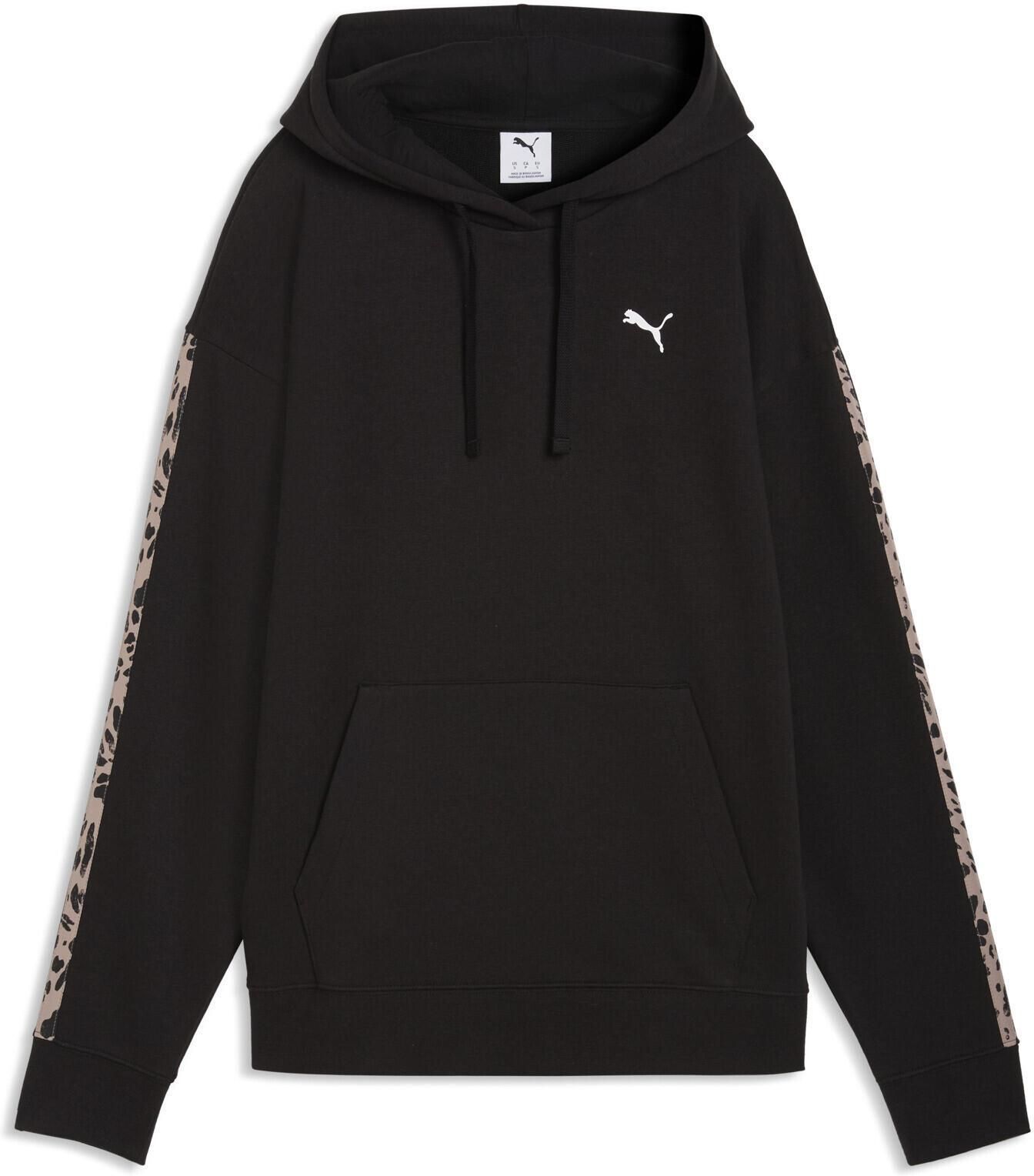 Bluza damska Puma z kolekcji Essentials Graphic to idealne połączenie codziennego komfortu i miejskiego stylu. Zaprojektowana z myślą o swobodnych dniach, świetnie sprawdzi się zarówno podczas relaksu, jak i aktywności na mieście. Jej luźny krój zapewnia wygodę noszenia, dzięki czemu możesz nosić ją solo lub jako dodatkową warstwę w chłodniejsze dni. Model został wykończony elastycznymi ściągaczami przy mankietach i u dołu, co pomaga utrzymać ciepło i poprawia dopasowanie. Regulowany kaptur stanowi dodatkową ochronę przed wiatrem, a praktyczna kieszeń z przodu pozwala ogrzać dłonie lub przechować najpotrzebniejsze drobiazgi. Miękka, przyjemna w dotyku tkanina wspiera komfort termiczny, jednocześnie umożliwiając skórze oddychanie. Niewielkie logo podkreśla sportowy charakter bluzy, lampasy ze zwierzęcym motywem nadają jej nowoczesnego wyglądu, który z łatwością dopasujesz do jeansów, legginsów czy joggerów. To uniwersalny element garderoby dla kobiet, które cenią wygodę, funkcjonalność i styl w każdej sytuacji. Dane techniczne:· Materiał główny: 68% bawełna, 32% poliester· Ściągacze: 97% bawełna, 3% elastan· Podszewka kaptura: 100% bawełna