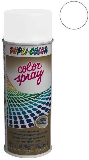 Dupli-Color Lakier ColorSpray biały matowy 400 ml Syntetyczny lakier dekoracyjny Color Spray w kolorze białym (wersja matowa) może być stosowany do różnego rodzaju powierzchni: drewna, metalu, aluminium, szkła, betonu, kartonu, papieru, eternitu, porcelany i tworzyw sztucznych. Doskonale sprawdza się przy dekoracji domu wewnątrz i na zewnątrz. Jest odporny na działanie czynników atmosferycznych, gwarantując żywe kolory na lata. Dobrze przylega do większości powierzchni, jest wydajny i łatwy w zastosowaniu.