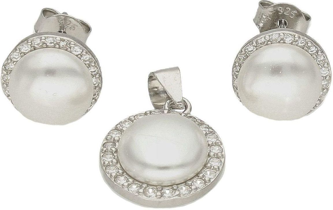 Komplet srebrny damski perełka w cyrkoniach Sompolno