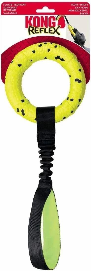 KONG - Reflective tugboat 40X14.5X3CmBite-resistant material satisfies chewing instincts. Stretchable strap fuels dynamic traction. High-tech materials borrowed from the sports equipment industry make this bouncy, flexible fetch-and-drag toy so sturdy it's guaranteed to last, with bite-defying self-healing properties for seasons of fun and a stretchy strap for dynamic pulling. Floating for water play.