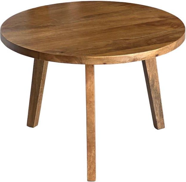 Opis produktu Stolik kawowy Liten o średnicy 60 cm i wysokości 42 cm to mebel, który doskonale spisze się w roli praktycznego i designerskiego wyposażenia we wnętrzach takich jak salon czy biuro. Mebel ten na pewno przypadnie do gustu miłośnikom ciepłego i przytulnego drewna. Za jego wykonanie odpowiada zespół doświadczonych rzemieślników w Indiach. Dołożyli oni wszelkich starań, aby model ten wyróżniał się solidnym wykonaniem. Prezentowany stolik kawowy to gwarancja wysokich walorów użytkowych. Ma matowe wykończenie, dlatego idealnie nadaje się do zestawienia z innymi meblami dostępnymi w naszym sklepie. Ten stolik kawowy będzie się też świetnie komponował z pozostałymi stolikami Liten w innych rozmiarach. Stolik kawowy Liten idealnie sprawdzi się jako wyposażenie we wnętrzach stylizowanych na skandynawskie, loft, vintage, modern lub klasyczne. Materiałem wykonania tego mebla jest mango indyjskie lub palisander indyjski. Stolik ma nieskomplikowany design. Jego okrągły blat spoczywa na lekko ukośnie zamontowanych nogach, co dodaje meblowi wizualnej lekkości. Dane techniczne Grubość blatu [cm]: 2,5 Montaż: do przykręcenia nogi Dla podanych wymiarów mebli obowiązuje tolerancja +- 3%