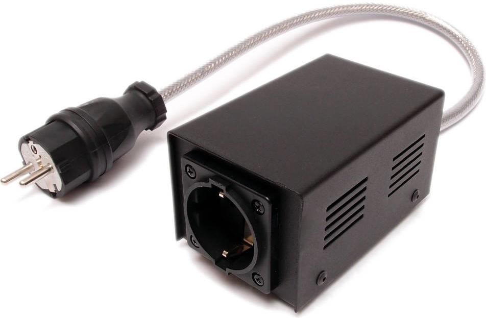 Tomanek DC-Blocker DCB1 Reduktor składowej stałej sieci zasilającej 230V Tomanek DC-Blocker DCB1 jest urządzeniem/reduktorem, którego zadaniem jest eliminacja niepożądanej składowej stałej napięcia zasilającego 230V. Składowa stała jest wszechobecnym zjawiskiem powodowanym głównie przez urządzenia impulsowe (np. zasilacze impulsowe) oraz wszelkiego rodzaju przetwornice. W domowych warunkach źródłem tego zjawiska mogą być np. pralka automatyczna, wewnętrzne zasilacze telewizorów, ładowarki do telefonów, zasilacze komputerów i laptopów itp. Składowa stała ma negatywny wpływ na transformatory w urządzeniach audio – powoduje przemagnesowanie ich rdzenia, co niesie za sobą znaczny wzrost głośności ich pracy (tzw. buczenie), większe nagrzewanie się transformatora oraz odkształcenie sinusoidalnego kształtu napięcia. Wszystkie te negatywne skutki obecności składowej stałej w sieci 230V przekładają się na pogorszenie parametrów wzmacniaczy mocy i innych urządzeń audio. Wtórnym skutkiem jest również znaczny wzrost poboru prądu przez urządzenia audio, który w dużej mierze jest tracony w postaci nadmiernego grzania się transformatora oraz wzrost głośności pracy ich transformatorów sieciowych. Urządzenie DCB1 eliminuje wszystkie negatywne skutki obecności składowej stałej. Wystarczy wpiąć je pomiędzy gniazdo 230V a wtyk urządzenia. Recenzję i test urządznia można także przeczytać na znanym w świecie audiofilskim blogu (link): Recenzja DCB1 na Stereo i Kolorowo by Ludwik Hegel Na urządzenie udzielana jest 24 miesięczna g w a r a n c j a producenta. Do urządzenia każdorazowo jest dołączona karta gwarancyjna oraz instrukcja użytkowania i bezpiecznej eksploatacji. Tomanek DCB1 produkowany jest w polskiej firmie, stąd wynikają takie korzyści jak: Wysokie bezpieczeństwo użytkowania; Łatwość zakupu, brak skomplikowanych procedur i barier językowych; Krótka procedura zamówienia, szybkość realizacji zamówień; Wiarygodna gwarancja; Łatwy dostęp do serwisu gwarancyjnego i pogwarancyjnego (serwis realizowany przez producenta); Niski koszt transportu względem urządzeń sprowadzanych z zagranicy; Dostęp do bezpośredniej pomocy technicznej (mailowej, telefonicznej, poprzez komunikator); Pewność w stosunku do pochodzenia zasilacza oraz podzespołów użytych do jego produkcji; Kupując u polskiego producenta wspieramy rodzimą firmę. Specyfikacja techniczna Wejście: ~230V AC, 50 Hz (wtyk 230VAC Bals) Wyjście: 1 gniazdo typu Schuko Obciążalność: Max. 6,5A (1500W) Długość przewodu wejściowego: 50 cm Wymiary (mm): 125 x 80 x 60 mm Waga (w przybliżeniu): 0,8 kg Materiał obudowy: Odlew aluminiowy Kolor obudowy: Czarno/szary