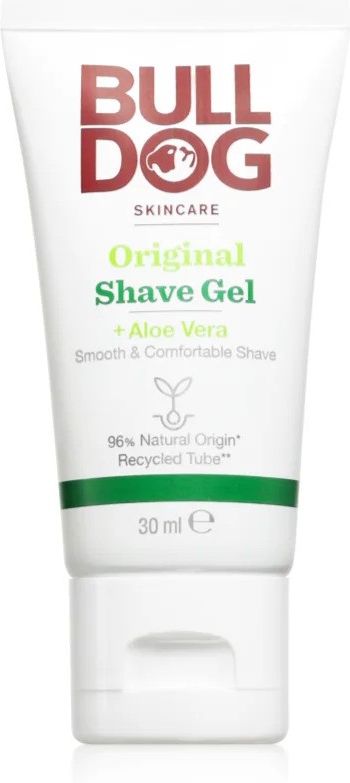 Bulldog Original Shave Gel, 30 ml, Produkty do golenia dla mężczyzn, Właściwości: umożliwia łatwe golenie działa łagodząco na skórę nawilża skórę i jej nie wysusza ułatwia poślizg maszynki na skórze przyjemnie odświeża zapobiega podrażnieniu skóry zapewnia maksymalnie gładkie golenie Sposób użycia: Nanieś odpowiednią ilość preparatu na zwilżoną twarz i szyję Równomiernie rozcieraj okrężnymi ruchami, dopóki nie wytworzy się piana. Po goleniu dokładnie zmyj.