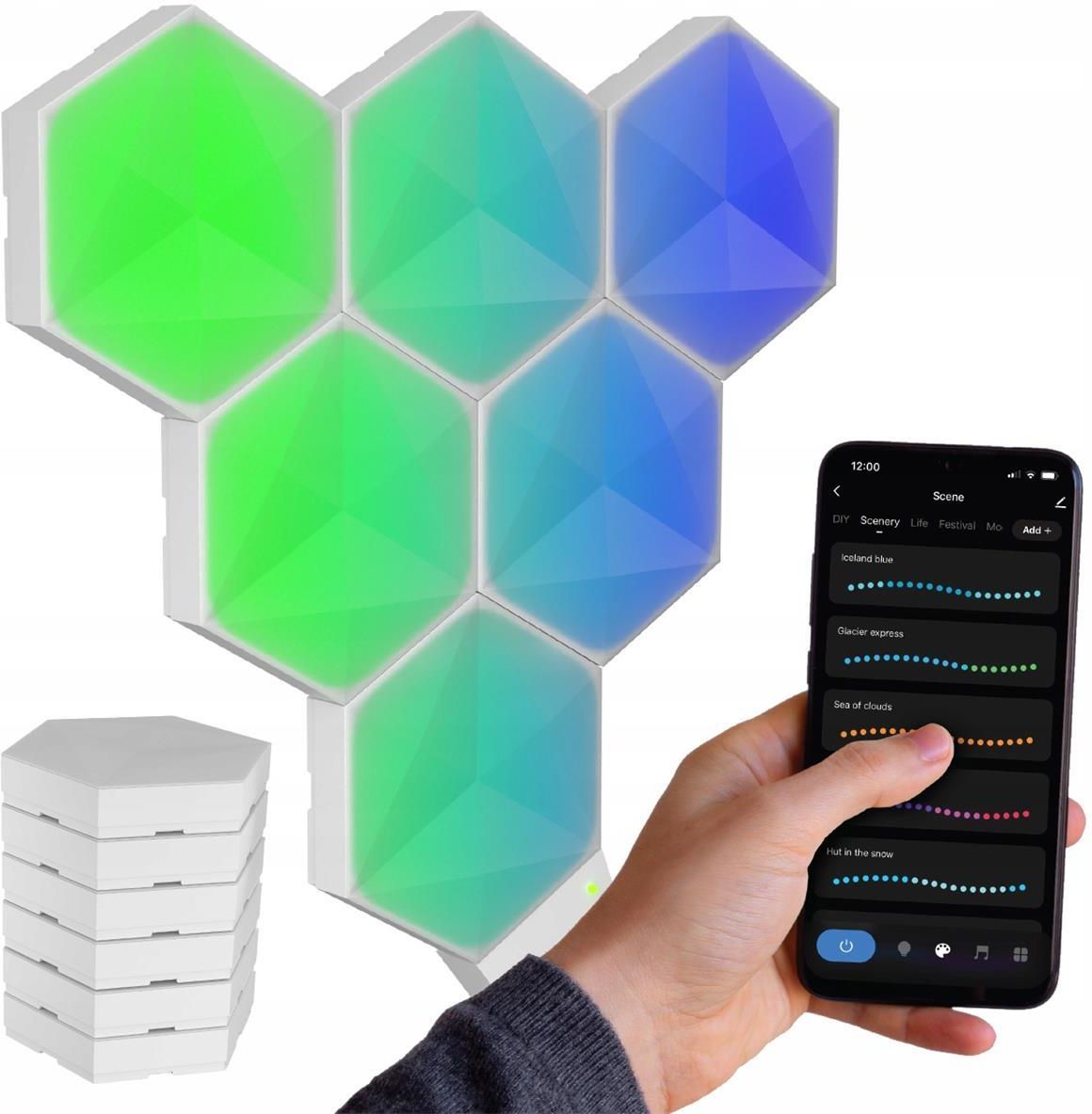 Najważniejsze cechy produktu Kształt hexagonu dla unikalnego designu Szeroka gama trybów RGB i możliwość tworzenia własnych Sterowanie przez aplikację, pilota lub panel zasilający Łatwy montaż dzięki mocnym naklejkom Kompatybilność z Tuya, SmartLife, Amazon Alexa i Google Assistant Nowoczesny …