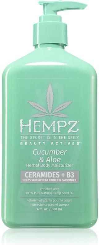 HEMPZ Cucumber & Aloe, 500 ml, Kremy do ciała dla kobiet, Krem do ciała HEMPZ Cucumber & Aloe pielęgnuje skórę, dostarczając jej potrzebnego odżywienia i długotrwałego nawilżenia. Właściwości: głęboko nawilża skórę intensywnie odżywia i zmiękcza nadaje skórze aksamitną miękkość łagodzi i odświeża skórę wykazuje właściwości ujędrniające Sposób użycia: Nanieś preparat na czystą skórę i delikatnie wmasuj aż do całkowitego wchłonięcia. Stosuj w razie potrzeby.