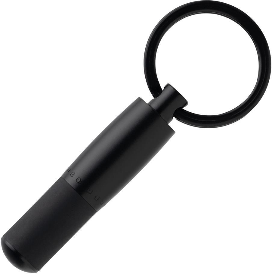 Łańcuszek na klucze Gear Matrix w kolorze czarnym. Matowy lakier wykończony gumową powłoką kontrastuje z czarną metalową wkładką z delikatnie wygrawerowanym napisem HUGO BOSS. Ten design nadaje mu nowoczesny wygląd ze sportowym i kolorowym akcentem. Breloki dostępne są w kolorze czarnym, niebieskim, czerwonym, żółtym lub khaki. Można łączyć je w zestawie z innymi akcesoriami z tej linii.