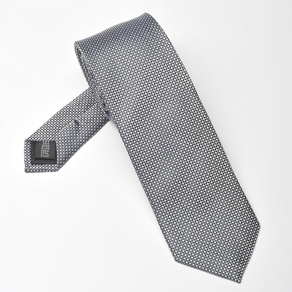 Jedwabny krawat Profuomo w czarno szary mikrowzór Krawat jest w mikrowzór - delikatną krateczkę o szerokości 1 mm. Jest doskonałym akcesorium dla osób, które nie lubią większych wzorów, a pragną odmiany po gładkich krawatach. Ten krawat można łączyć zarówno z gładką koszulą jak i koszulą w kratkę czy prążki. Warto także stworzyć za pomocą szarego krawata w mikrowzór stylizacje na co dzień w stylu smart casual, jako dodatek do jasnej koszuli, i klasycznych jeansów. Jedwabny krawat nie wychodzi z mody Jedwabny klasyczny krawat nawet jeśli ma drobny wzór pozostaje modny przez wiele sezonów. Jest także uniwersalny i od Ciebie zależy czy zastosujesz go w stylizacji eleganckiej czy jako przełamanie tak zwanej ulicznej mody, aby dorzucić szczyptę elegancji. Dzięki zastosowaniu wysokiej jakości jedwabiu, szary krawat Profuomo we wzór będzie służył nawet kilka lat. Warto tylko pamiętać o jego starannej pielęgnacji. Dlaczego marka Profuomo? Czy wiesz, że Profuomo jest obecne na światowym rynku mody od ponad 80 lat? Projektanci tej marki dbają o szczegóły swoich projektów na każdym etapie. Dzięki akcesoria są wysokiej jakości, co z kolei budzi zaufanie zadowolonych klientów. Warto zainwestować w nowoczesny proces szycia, sprawdzoną jakość i uniwersalny styl.