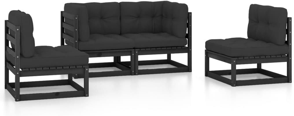 Ten ogrodowy zestaw wypoczynkowy jest znakomitym wyborem na relaks i korzystanie z pogody, a także drzemkę czy rozmowę z rodziną lub przyjaciółmi. Zestaw mebli wypoczynkowych do ogrodu wykonano z litego drewna sosnowego, dzięki czemu jest solidny i stabilny. Poduszki zapewniają większy komfort. Możesz zestawić komplet z innymi segmentami modułowymi, aby stworzyć własne konfiguracje ogrodowych zestawów wypoczynkowych! Uwaga: aby przedłużyć żywotność mebli ogrodowych, zalecamy ich regularne czyszczenie i niepozostawianie na zewnątrz bez właściwego zabezpieczenia. Czyszczenie: użyj roztworu wody z delikatnym detergentem Przechowywanie: jeżeli jest to możliwe, przechowuj produkt w chłodnym i suchym miejscu, najlepiej w pomieszczeniu. Jeśli ma on być przechowywany na zewnątrz, należy go zabezpieczyć wodoszczelnym pokrowcem. Po deszczu lub śniegu usuń nadmiar wody lub śniegu z płaskich powierzchni i osusz je. Zapewnij wystarczającą cyrkulację powietrza, aby uniknąć uszkodzeń spowodowanych przez wilgoć. Kolor: czarny Kolor poduszki: antracytowy Materiał: lite drewno sosnowe, tkanina (100% poliester) Wymiary sofy środkowej/narożnej: 70 x 70 x 67 cm (szer. x gł. x wys.) Wymiary poduszki na siedzisko: 58 x 58 x 10 cm (dł. x szer. x gr.) Wymiary poduszki na oparcie/bok: 50 x 40 x 12 cm (dł. x szer. x gr.) Wymagany montaż: tak Zawartość przesyłki: 2 x sofa narożna 2 x sofa środkowa 4 x poduszka na siedzisko 6 x poduszka na oparcie/bok
