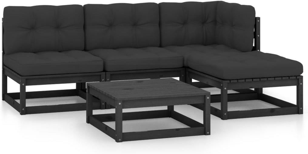 Ten ogrodowy zestaw wypoczynkowy jest znakomitym wyborem na relaks i korzystanie z pogody, a także drzemkę czy rozmowę z rodziną lub przyjaciółmi. Zestaw mebli wypoczynkowych do ogrodu wykonano z litego drewna sosnowego, dzięki czemu jest solidny i stabilny. Poduszki zapewniają większy komfort. Możesz zestawić komplet z innymi segmentami modułowymi, aby stworzyć własne konfiguracje ogrodowych zestawów wypoczynkowych! Uwaga: aby przedłużyć żywotność mebli ogrodowych, zalecamy ich regularne czyszczenie i niepozostawianie na zewnątrz bez właściwego zabezpieczenia. Czyszczenie: użyj roztworu wody z delikatnym detergentem Przechowywanie: jeżeli jest to możliwe, przechowuj produkt w chłodnym i suchym miejscu, najlepiej w pomieszczeniu. Jeśli ma on być przechowywany na zewnątrz, należy go zabezpieczyć wodoszczelnym pokrowcem. Po deszczu lub śniegu usuń nadmiar wody lub śniegu z płaskich powierzchni i osusz je. Zapewnij wystarczającą cyrkulację powietrza, aby uniknąć uszkodzeń spowodowanych przez wilgoć. Kolor: czarny Kolor poduszki: antracytowy Materiał: lite drewno sosnowe, tkanina (100% poliester) Wymiary sofy środkowej/narożnej: 70 x 70 x 67 cm (szer. x gł. x wys.) Wymiary stolika/podnóżka: 70 x 70 x 30 cm (szer. x gł. x wys.) Wymiary poduszki na siedzisko: 58 x 58 x 10 cm (dł. x szer. x gr.) Wymiary poduszki na oparcie/bok: 50 x 40 x 12 cm (dł. x szer. x gr.) Wymagany montaż: tak Zawartość przesyłki: 2 x sofa środkowa 1 x sofa narożna 1 x podnóżek 1 x stół 4 x poduszka na siedzisko 4 x poduszka na oparcie/bok