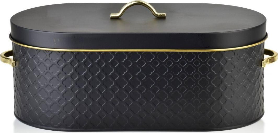 Chlebak Pojemnik na Chleb Sandy Black – Elegancja i Styl w Twojej Kuchni Chlebak Sandy Black marki Cookini to wyjątkowy pojemnik na chleb, który łączy nowoczesny design z funkcjonalnością. Wykonany z wysokiej jakości stali nierdzewnej, charakteryzuje się eleganckim, czarnym kolorem i subtelnym, tłoczonym wzorem. Złote wykończenia dodają mu luksusowego charakteru, sprawiając, że stanie się on nie tylko praktycznym, ale również dekoracyjnym elementem każdej kuchni. Idealny do nowoczesnych wnętrz, jak i klasycznych przestrzeni, które potrzebują odrobiny wyrafinowanego stylu. Cechy Produktu Wysoka jakość materiału: Chlebak Sandy Black jest wykonany z stali nierdzewnej, co zapewnia jego odporność na uszkodzenia i korozję. Jest łatwy do czyszczenia, a jego trwałość gwarantuje długotrwałe użytkowanie. Elegancki design: Czarny kolor w połączeniu ze złotymi wykończeniami nadaje chlebakowi nowoczesny, ale jednocześnie ponadczasowy wygląd. Tłoczony wzór wprowadza subtelny akcent dekoracyjny, który sprawia, że produkt staje się ozdobą każdej kuchni. Funkcjonalność: Dzięki wymiarom (34 cm długości, 18 cm szerokości i 13 cm wysokości, 15 cm z uchwytami) chlebak zapewnia odpowiednią przestrzeń do przechowywania chleba, bułek i innych wypieków. Dzięki odpowiednim proporcjom, pieczywo pozostaje świeże przez dłuższy czas, a jego przechowywanie jest wygodne i estetyczne. Bezpieczny kontakt z żywnością: Produkt jest bezpieczny w kontakcie z żywnością, co gwarantuje, że przechowywane w nim pieczywo jest w pełni bezpieczne do spożycia. Stylowe wykończenia: Złote uchwyty i detale to akcenty, które nadają chlebakowi luksusowego charakteru, idealnie komponując się z nowoczesnym stylem kuchni. Wymiary Długość: 34 cm (36 cm z uchwytami) Szerokość: 18 cm Wysokość: 13 cm (15 cm z uchwytami) Pakowanie Chlebak Sandy Black jest zapakowany w elegancki color box, co sprawia, że może być doskonałym pomysłem na prezent dla miłośników pięknych akcesoriów kuchennych. Dane techniczne Marka: Cookini Materiał: Stal nierdzewna Kolor: Czarny z złotymi wykończeniami Wymiary: 34x18x13 cm (15 cm z uchwytami) Waga: 1,14 kg Bezpieczny kontakt z żywnością Dlaczego warto wybrać Chlebak Sandy Black? Chlebak Sandy Black to połączenie elegancji, funkcjonalności i trwałości. Jego subtelny tłoczony wzór i złote akcenty sprawiają, że jest to doskonały wybór dla osób, które cenią piękno w każdym detalu. Metalowa konstrukcja zapewnia długotrwałe użytkowanie, a nowoczesny wygląd wkomponuje się w każde wnętrze. Doskonały wybór do nowoczesnych, jak i klasycznych kuchni. Chlebak Sandy Black to elegancki wybór, który idealnie uzupełni każdą kuchnię, zapewniając odpowiednie warunki do przechowywania pieczywa, jednocześnie dodając wnętrzu luksusowego charakteru.