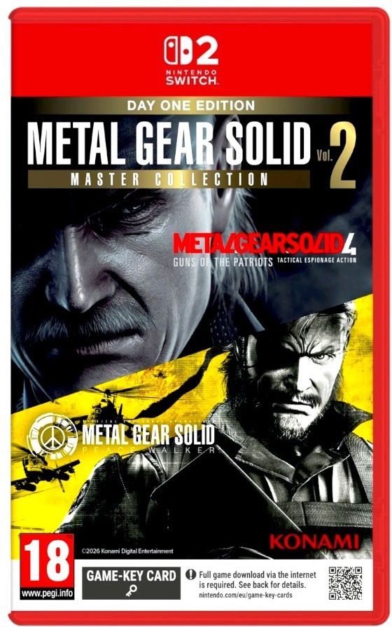 UWAGA ! PRZEDSPRZEDAŻ ! Data premiery: 2026-08-27 ! PLANOWANA WYSYŁKA DZIEŃ RRZED PREMIERĄ! Metal Gear Solid Master Collection Volume 2 (NS2) Stan: Nowy Data premiery: 2026-08-27 Platforma: Nintendo Switch 2 Rodzaj wydania: Pudełkowe Nośnik: Game-Key Card Wersja językowa gry: Angielska Wersja językowa okładki: Druga część wyjątkowego MASTER COLLECTION przenosi gry Metal Gear Solid 4: Guns of the Patriots oraz Metal Gear Solid: Peace Walker (wersja HD Collection) na nowoczesne konsole i komputery PC. Zamów w przedsprzedaży, żeby otrzymać poniższe DLC:Zachowaj zapis danych z dowolnego z tytułów wchodzących w skład wydania METAL GEAR SOLID: MASTER COLLECTION Vol.1 Dodatek do Metal Gear Solid 4: Guns of the Patriots: Cardboard Camouflage Dodatek do Metal Gear Solid: Peace Walker (HD Collection version): Uniform: LOVE BOX Dodatek do „Metal Gear Solid 4: Guns of the Patriots”: Gold Camouflage Dodatek do „Metal Gear Solid: Peace Walker (HD Collection version)”: Uniform: GOLD *Zawartość dodatkową można uzyskać, grając w Metal Gear Solid 4: Guns of the Patriots oraz Metal Gear Solid: Peace Walker (HD Collection version). *Wymaga to obecności na konsoli używanej do gry w Metal Gear Solid 4: Guns of the Patriots oraz Metal Gear Solid: Peace Walker (HD Collection version) zapisu danych z tytułów wchodzących w skład wydania METAL GEAR SOLID: MASTER COLLECTION Vol.1, wykonanych za pomocą tego samego konta. *Gra najpierw w Metal Gear Solid 4: Guns of the Patriots oraz „Metal Gear Solid: Peace Walker (HD Collection version), a następnie w tytuły wchodzące w skład kolekcji METAL GEAR SOLID: MASTER COLLECTION Vol.1, wciąż kwalifikuje do uzyskania dodatku. Metal Gear Solid 4: Guns of the Patriots: Metal Gear Solid 4: Guns of the Patriots pojawi się na współczesnych platformach, wiernie oddając oryginalne doświadczenie z PlayStation 3, a jednocześnie wprowadzając współczesne ulepszenia interfejsu użytkownika. Usprawniona konfiguracja klawiszy i nowoczesne ulepszenia interfejsu użytkownika zapewniają bardziej przystępną i zoptymalizowaną rozgrywkę. Zawiera bazę danych Metal Gear Solid 4, Metal Gear Solid 4: Master Book oraz Metal Gear Solid 4: Screenplay, zapewniając graczom niezrównany dostęp do bogatego świata gry. Metal Gear Solid: Peace Walker Tryby kooperacji i rywalizacji powracają na współczesnych platformach, zachowując oryginalną rozgrywkę. Metal Gear Solid: Peace Walker, będący bezpośrednią kontynuacją Metal Gear Solid 3 (Δ), jest pozycją obowiązkową dla fanów serii. Zawiera dodatkowe materiały, takie jak Metal Gear Solid: Peace Walker: Master Book i Metal Gear Solid: Peace Walker: Screenplay, które pozwalają fanom jeszcze lepiej zrozumieć świat gry. Zawiera nowo dodany schemat sterowania „Custom Type”, umożliwiający pełną personalizację przycisków, co zapewnia prawdziwie spersonalizowane wrażenia z gry. Ciesz się trybem kooperacyjnym jak i rozgrywką sieciową nastawioną na rywalizację, natomiast na Nintendo Switch oraz Nintendo Switch 2 możesz także skorzystać z bezprzewodowej lokalnej rozgrywki. Dodatkowa zawartość Metal Gear: Ghost Babel to gra bonusowa dołączona do MASTER COLLECTION VOLUME 2. *Niedostępna osobno.