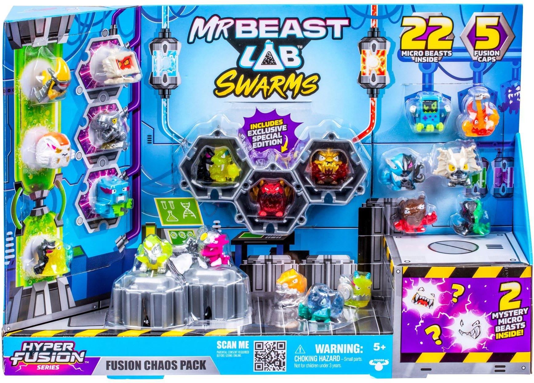 "Are you ready for the MrBeast Lab Swarms Hyper Fusion series? There are over 100 different Hyper Fusion Swarms figures to collect! Open up the chaos of MrBeast Lab Fusion and reveal the mysterious box! The Chaos Swarms pack comes with 22 cool Hyper Fusion Swarms figures - including 1 LIMITED …