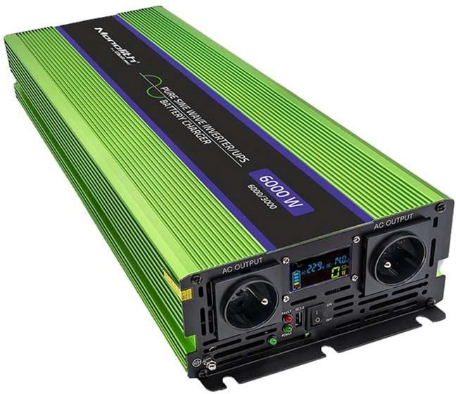 Możliwość zwrotu: NIE Moc znamionowa: 3000 W Moc całkowita (chwilowa): 6000 W (5 sekund) Napięcie wejściowe: 12 V Napięcie Wyjściowe: 230 V ± 5% Częstotliwość wyjściowa: 50 Hz ± 0.5HZ Przebieg napięcia na wyjściu: Czysta fala sinusoidalna Zniekształcenia fali: THD3% Ładowanie stałym napięciem: 14.6 …