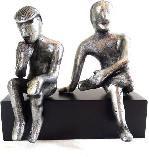 Bliźnięta - znak zodiaku •Figurka aluminiowa na drewnianej podstawie •Wymiary: 18x17x10 cm Figurka dekoracyjna GEM to propozycja dla fanów astrologii urodzonych pod zodiakalnym znakiem Bliźniąt. Figurka ukazuje dualną naturę osób spod tego znaku: z jednej strony pogrążonego w rozmyślaniach, kontemplującego świat myśliciela, z drugiej otwartego, energicznego i gotowego na każdą przygodę ancymonka. Figurka swoją formą i elegancką kolorystyką ozdobi komodę, kominek lub biurko we współczesnym, niesztampowym stylu. Jest to nowoczesna rzeźba do salonu, która z pewnością ucieszy zodiakalnego Bliźniaka.