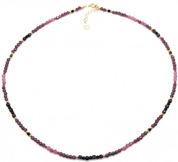 Naszyjnik TURMALIN GRANAT 925 mbax63 Naszyjnik wykonany ze srebra próby 925, pozłacanego 24 karatowym złotem. Kamień: Turmalin+ Granat+ Hematyt Rozmiar kamienia: 3/2 mm Długość: 44 cm Długości do wyboru: 38 cm /42 cm/ 44 cm Zapięcie: klasyczne (federing) Biżuteria ręcznie wykonana, produkt Polski.