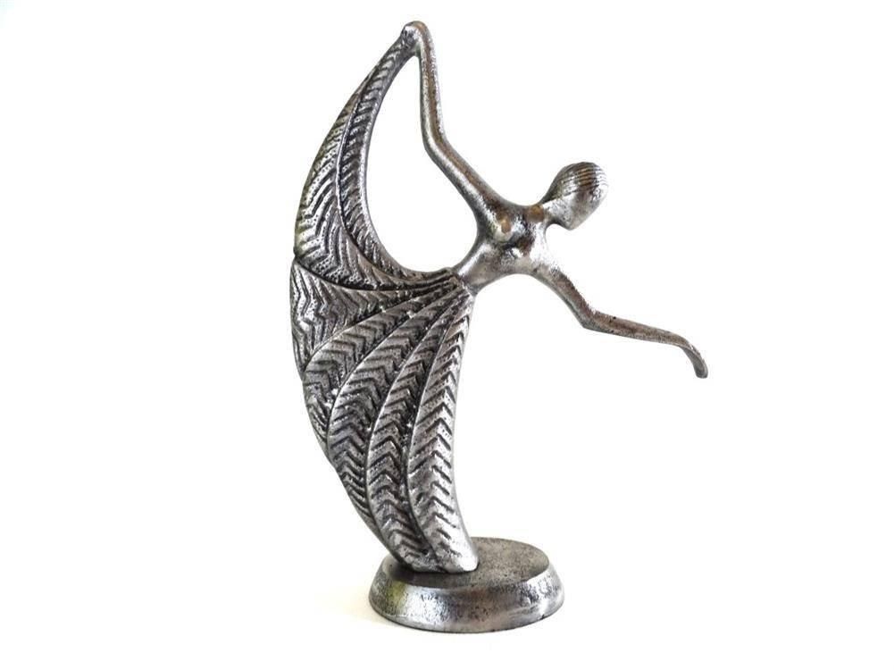 Figurka wykonana z aluminium Wymiary: 28x20x7 cm Taniec to sztuka wyrazu, to wolność i wzniosłość. Jest to niekiedy metafora ruchu ciał niebieskich, a czasem poruszająca opowieść chwytająca za serce. Taniec to oczywiście wieloletnia praca nad doskonałością, którą warto doceniać. Figurka dekoracyjna VIR to propozycja dla tych, którzy swoje serce zostawiają na scenach i parkietach. Statuetka przedstawia tańczącą kobietę, baletnicę, której rąbek spódnicy w niczym nie przeszkadza. Jest to wyjątkowy prezent dla tancerki, baletnicy lub dla zodiakalnej Panny. Sprawdzi się jako nagroda dla wygranej w konkursie tanecznym, która zajmie honorowe miejsce w domowej gablocie.