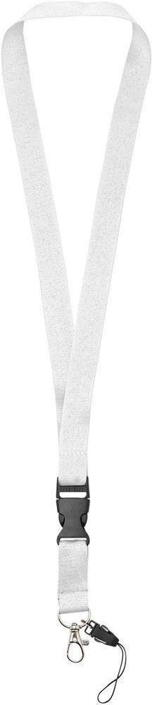 Wielofunkcyjna smycz z odczepianą klamrą, owalnym klipsem-haczykiem i uchwytem do telefonu. Idealna do przymocowania plakietki z nazwiskiem, identyfikatora lub kluczy. Dostępna w wielu kolorach, z dużą przestrzenią na logo lub hasło. Najlepszy wybór. Jeśli obie strony mają być ozdabiane tą samą grafiką brak kosztu ustawienia dodatkowego nadruku.