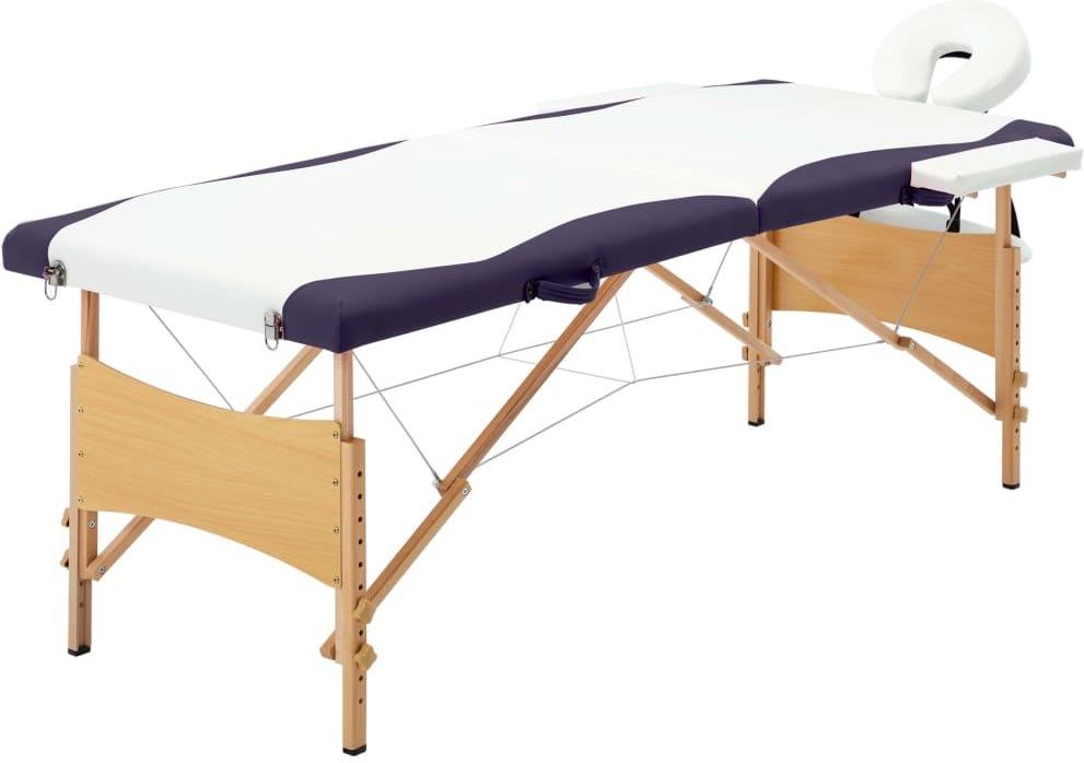 vidaXL Składany Stół Do Masażu 2 Strefy Drewniany Biało-Fioletowy Sopot