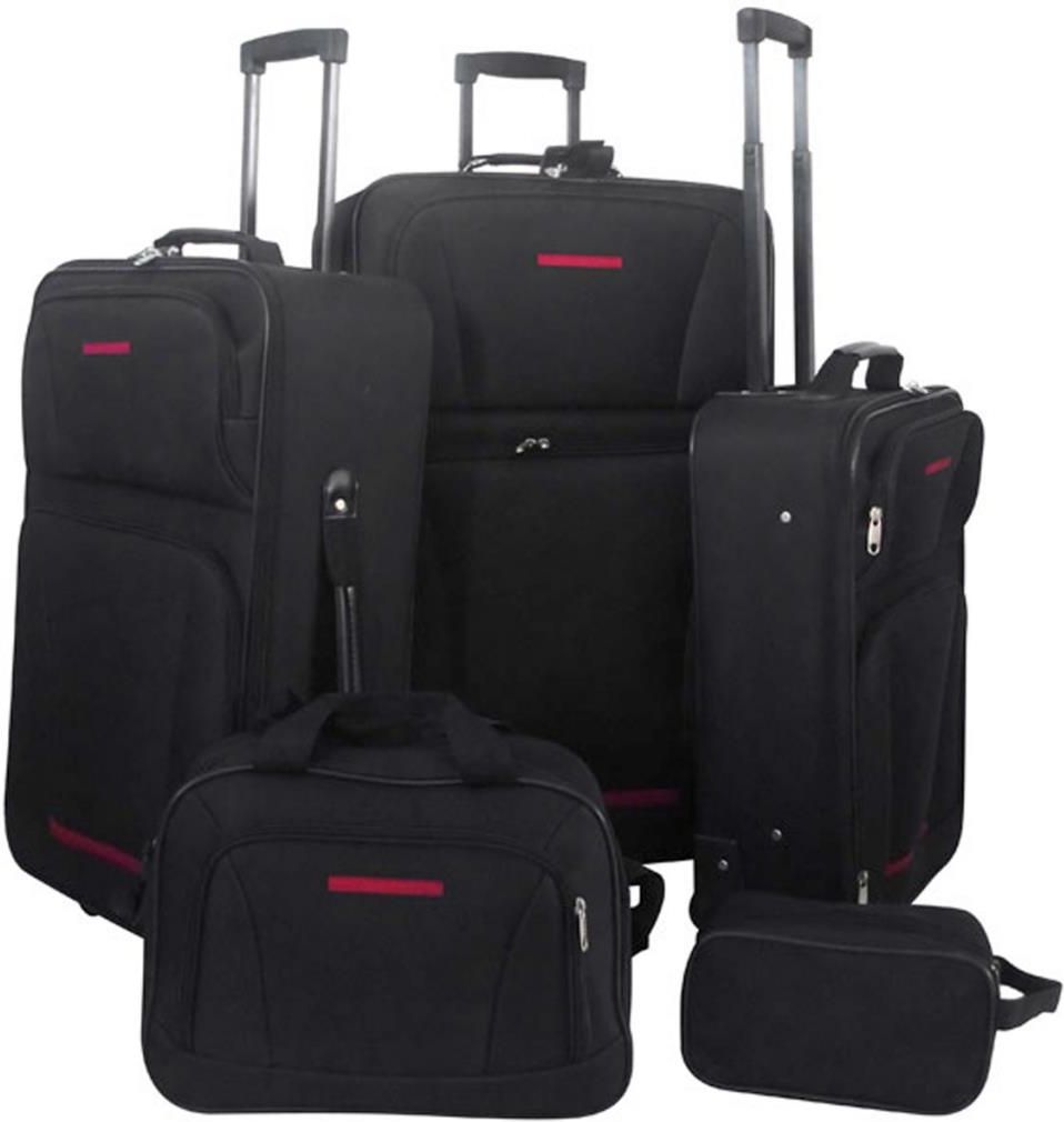 Odkryj niezwykły zestaw walizek, który pozwoli Ci w prosty sposób spakować wszystkie niezbędne rzeczy na każdą podróż. Nasz 5-elementowy zestaw podróżny to idealne rozwiązanie zarówno na krótkie, jak i długie wyjazdy. Różne rozmiary walizek: W zestawie znajdziesz walizki w trzech rozmiarach, które dostosujesz do swoich potrzeb: Walizka S: 51 x 35 x 18 cm Walizka M: 61 x 40 x 21 cm Walizka L: 71 x 45 x 23 cm Dodatkowe akcesoria: W skład zestawu wchodzi również torba podróżna (28 x 38 x 11 cm) oraz kosmetyczka (24 x 14 x 11 cm). Praktyczność: Teleskopowe uchwyty oraz 2 kółka na spodzie walizek zapewniają wygodne przemieszczanie się. Trwałość: Walizki wykonane są z tkaniny (100% poliester) z pokryciem PVC, a ich krawędzie są dodatkowo obszyte, co zwiększa ich odporność na uszkodzenia. Oszczędność miejsca: Możliwość składania walizek jedna w drugą ułatwia przechowywanie i pozwala zaoszczędzić miejsce. Zestaw dostępny jest w eleganckim kolorze czarnym oraz czerwonym, co sprawia, że każdy znajdzie coś dla siebie. Wybierz nasz zestaw podróżny i ciesz się komfortem oraz stylem podczas każdej podróży! EAN: 8718475811428