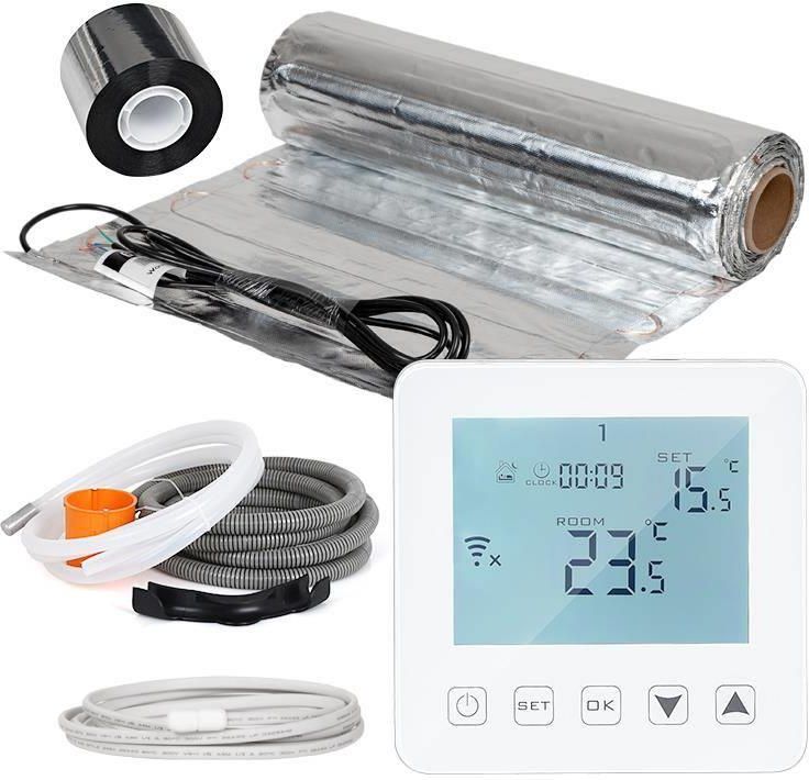 elektryczne ogrzewanie podłogowe, mata grzewcza, 8m², WiFi, termostat pokojowy, regulator temperatury, sterowanie ogrzewaniem podłogowym, sterownik temperatury, wyświetlacz LCD, pod panele, do domu