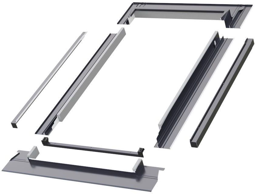 FAKRO ESV-T AX00 GREENVIEW - kołnierz uniwersalny w wersji Thermo z dodatkową termoizolacją do montażu okna pojedynczo. Kołnierz umożliwia szczelne połączenie okna z płaskimi pokryciami dachowymi, takimi jak: papa, gonty bitumiczne, łupki o grubości pokrycia do 10 mm (2 warstwy po 5 mm). Kołnierze FAKRO ESV-T AX00 GREENVIEW to nowa generacja kołnierzy uszczelniających do okien dachowych FAKRO GREENVIEW, w których dokonano znaczących zmian konstrukcyjnych. Poprawiono ich wytrzymałość kołnierzy oraz ich ogólną estetykę, wprowadzono także pewne ułatwienia, które przyspieszają prace montażowe. Kołnierz z dodatkową termoizolacją jest doskonałym systemowym rozwiązaniem gwarantującym szczelne i „ciepłe” połączenie okna z połacią dachu. Posiada przyklejony od wewnątrz elastyczny materiał docieplający, który szczelnie przylega do ościeżnicy okna dzięki czemu po zamontowaniu tworzy termoizolacyjną ramę. Materiał termoizolacyjny charakteryzuje się bardzo dobrymi parametrami (bardzo dobry współczynnik λ). Kołnierz w wersji Thermo izoluje termicznie okno i znacznie poprawia współczynnik przenikania ciepła nawet do 15% w zależności od typu okna. Ogranicza ryzyko powstawania ewentualnych mostków termicznych i strat ciepła. Kołnierze oferowane są w kolorze RAL 7016 (antracyt) jako standard, na zamówienie (bez dopłat) dostępne też w kolorze RAL 9005 (czarny) oraz RAL 7022 (ciemny popiel). Charakterystyka: wersja Thermo - izoluje termicznie okno i znacznie poprawia współczynnik przenikania ciepła , zmieniony surowiec do produkcji kołnierza, co zwiększa odporność na uszkodzenia i sztywność, poprawiona estetyka, dzięki zmianie kształtu kołnierza, nowy kolor oblachowania - antracyt RAL7016, zintegrowany profil kryjący dół ościeżnicy PKDO z dolnym elementem kołnierza, eliminacja wkrętów montażowych na górnym elemencie kołnierza. Dodatkowo, kołnierz GREENVIEW jest teraz dostarczany w nowym opakowaniu, które cechuje się zwiększoną wytrzymałością na uszkodzenia i łatwiejszym systemem otwierania dzięki tasiemce zrywanej, wtopionej w tekturę. Kołnierz uszczelniający jest niezbędnym elementem do zamontowania okna w dachu. Stanowi zabezpieczenie krawędzi styku dachu z oknem przed działaniem czynników atmosferycznych (deszcz, śnieg, wiatr). Kołnierz FAKRO ESV-T AX00 przystosowany jest do montażu okien pojedynczo.