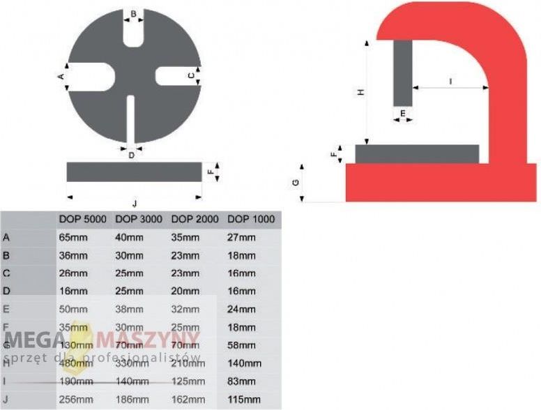 DOP1000 - Prasa ręczna Holzmann Opis prasy DOP1000 firmy Holzmann Podstawa z odlewu żeliwnego wysokiej jakości dla uzyskania bardzo dużej siły nacisku, prasa idealna do wciskania łożysk, tulei i wykonywania innych tego typu prac, przenoszenie siły dźwignią poprzez zastosowanie koła zębatego z dużymi zębami i listwy zębatej, uniwersalna podstawa. Dane techniczne Model DOP1000 Siła nacisku 1000 kg Waga 17 kg