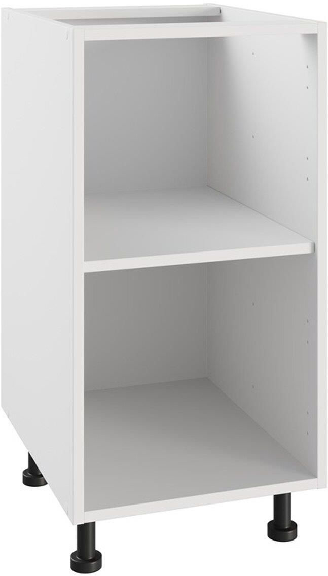 Korpus dolny 40 cm biały mat Korpus dolny o szerokości 40 cm, wysokości 87 cm i głębokości 51 cm to połączenie estetyki z funkcjonalnością. Pomieści wiele naczyń i przyborów kuchennych, dzięki czemu uporządkujemy swoją przestrzeń. Klasyczny biały matowy kolor idealnie pasują niemal do każdej kuchni. Wytrzymałość i odporność korpusu na wilgoć i zarysowania gwarantuje płyta laminowana, z której został wykonany. Do montażu frontu potrzebujemy 2 szt. zawiasów 110 stopni.