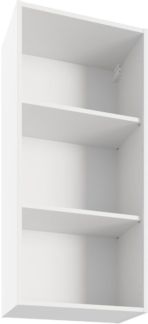 Korpus wysoki górny 50 cm biały mat Korpus wysoki górny bardzo elegancko będzie prezentował się w każdej kuchni. Wykonany jest z płyty laminowanej. Biały matowy kolor pozwoli nam dobrać fronty w dowolnym kolorze. Mogą być takie same jak zabudowa dolna, ale ciekawie będą prezentować się szafki górne w kontrastujących z dolną zabudową barwach. Do montażu frontów potrzebujemy 2 szt. zawiasów 110 stopni. Jego duża pojemność i funkcjonalność pozwoli pomieścić nam wiele sprzętów kuchennych oraz naczyń. Szerokość korpusu wynosi 50 cm, wysokość 106,8 cm i głębokość 30 cm. Jeśli zachodzi potrzeba założenia zaślepki, należy złożyć ją z dwóch zaślepek H-71 oraz H-35,6.