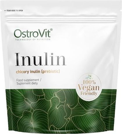 OstroVit Inulina 500 g OstroVit Inulina to wysokiej jakości suplement diety, który zawiera inulinę z cykorii. To preparat o prostym składzie, dostępny w wygodnej w użyciu formie proszku. To produkt stworzony z myślą o osobach, którym zależy na uzupełnieniu codziennej diety w wartościowy związek. 500 Gramów w opakowaniu 100 Porcji w opakowaniu 1 Miarka 1 porcja = 1 miarka Źródło inuliny - suplement diety zawiera 100% inuliny z cykorii. Źródło błonnika pokarmowego - 100 g preparatu dostarcza do organizmu 86 g błonnika pokarmowego. Prosty skład - produkt zawiera wyłącznie inulinę z cykorii, bez zbędnych dodatków. 1 porcja = 1 miarka = 5 g. Wydajność - jedno opakowanie produktu zawiera 100 porcji preparatu. Wygodna forma - preparat dostępny w postaci proszku zapewnia bezproblemową podaż suplementu diety i świetnie sprawdzi się wśród osób, które mają trudności z połykaniem tabletek - wystarczy porcję produktu wymieszać z wodą i gotowe! OstroVit Inulina - wartościowe źródło cennego związku Inulina - związek zbudowany z ponad 30 cząsteczek cukrów prostych, które są połączone wiązaniami β-2,1-glikozydowymi w nierozgałęziony łańcuch. To wielocukier pochodzenia roślinnego, który stanowi magazyn zapasowy. To substancja, która nie jest trawiona w górnym odcinku przewodu pokarmowego, dlatego też w niestrawionej formie jest transportowana do jelita grubego, gdzie ulega fermentacji bakteryjnej w okrężnicy. Inulina stanowi bogate źródło włókna pokarmowego, dlatego też wykorzystywana jako błonnik pokarmowy. Jednocześnie związek jest uznawany za prebiotyk, będąc doskonałą pożywką dla dobrych bakterii bytujących w układzie pokarmowym.