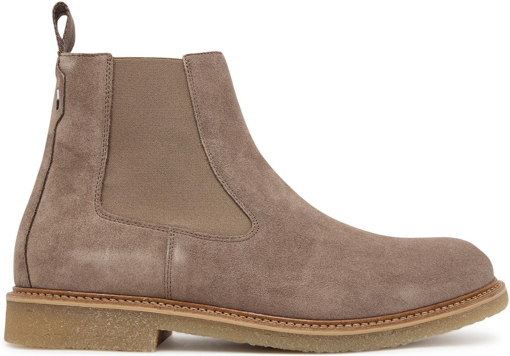 Dodaj do swojej garderoby klasykę w najlepszym wydaniu dzięki męskim sztybletom marki BOSS! Wykonane z naturalnej skóry zamszowej, łączą elegancję z wygodą. Wsuwane buty ułatwiają szybkie zakładanie, a gumowy klin w cholewce zapewnia idealne dopasowanie do stopy. Okrągły nosek podkreśla ich ponadczasowy charakter, sprawiając, że będą doskonałym uzupełnieniem zarówno casualowych, jak i bardziej formalnych stylizacji. Te sztyblety to kwintesencja stylu i jakości, której możesz zaufać na co dzień i na specjalne okazje.