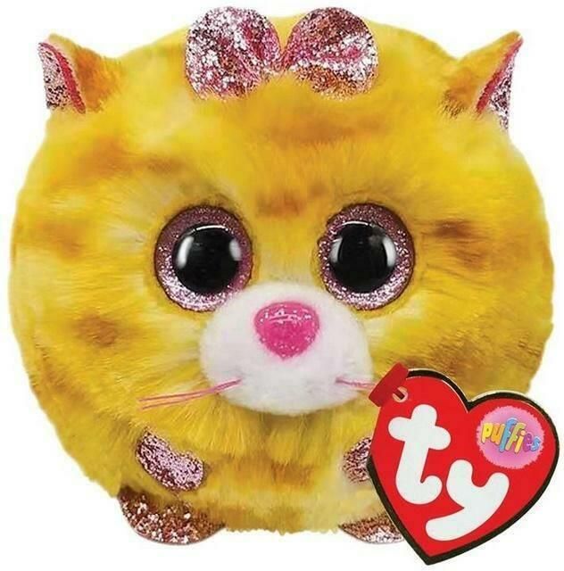 METEOR Maskotka TY Puffies Kot żółty - Tabitha Maskotka kot Tabitha Unikalne, ważone kulki Ty Puffa, które zawsze lądują na nogach podczas rzucania Wykonana z Ty Puff Błyszczące oczy z różową połyskującą kokardką, uszami i stopami Jasna, miękka tkanina Mieści się w dłoni Zawiera oficjalne serce Ty …