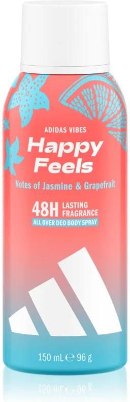 Adidas Vibes Happy Feels, 150 ml, Dezodoranty dla kobiet, Dezodorant Adidas Vibes skutecznie walczy z nieprzyjemnym zapachem i zapewnia długotrwałe uczucie komfortu i świeżości. Właściwości: dodaje świeżości nie pozostawia śladów na ubraniu zapewnia długotrwałe uczucie świeżości