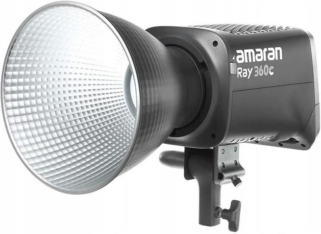 Lampa LED Amaran Ray 360c Amaran Ray 360c to flagowa lampa LED COB o pełnym kolorze, zaprojektowana dla twórców, którzy potrzebują większej mocy w kompaktowej formie. Oferuje studyjną wydajność i uproszczoną obsługę, gwarantując jednocześnie doskonałą jakość światła i precyzję kolorów dla każdego projektu. Ta innowacyjna lampa typu monolight integruje zasilacz bezpośrednio w obudowie, eliminując potrzebę zewnętrznego zasilacza i zapewniając szybszą konfigurację oraz bardziej wydajny przepływ pracy w studiu. Dzięki silnikowi świetlnemu OmniColor, Ray 360c dostarcza pełniejsze i bardziej zbalansowane spektrum, co przekłada się na czystsze biele, wierniejsze odcienie skóry i dokładniejsze kolory, które wyglądają realistycznie zarówno na kamerze, jak i dla ludzkiego oka. Główne cechy Zintegrowany zasilacz w konstrukcji monolight dla uproszczonej konfiguracji. Silnik świetlny OmniColor zapewniający dokładne odwzorowanie kolorów i zbalansowane spektrum. Moc wyjściowa 360 W oferująca ponad 80% więcej światła niż amaran 300c. Rozszerzony zakres temperatury barwowej od 1800K do 20000K. Wysokie wskaźniki wierności kolorów: CRI 95+, TLCI 95+, SSI (Tungsten) 87, SSI (D56) 80. Odporność na warunki atmosferyczne z klasą IP54, zapewniająca niezawodność w różnych środowiskach. Intuicyjne sterowanie za pomocą adaptacyjnego pokrętła FlowTurn™ i aplikacji amaran App. Możliwość sterowania DMX przez opcjonalny adapter USB-C do 5-Pin, dla zaawansowanych konfiguracji. Aktywne chłodzenie z maksymalnym poziomem hałasu 28dBA, zapewniające cichą pracę. Maksymalna jasność 17130 lux z odległości 1 metra (bez akcesoriów) i strumień świetlny 23174 lumenów. Uproszczona moc, jeden kabel Amaran Ray 360c wyróżnia się prawdziwie monolityczną konstrukcją, która integruje zasilacz bezpośrednio w obudowie lampy. To rewolucyjne rozwiązanie eliminuje potrzebę stosowania nieporęcznych, zewnętrznych zasilaczy, co znacząco upraszcza zarządzanie kablami. Wystarczy podłączyć jeden kabel AC, aby cieszyć się szybszą i bardziej uporządkowaną konfiguracją, co przekłada się na zwiększoną efektywność pracy na planie czy w studiu. Precyzja kolorów, której możesz zaufać Sercem amaran Ray 360c jest innowacyjny silnik świetlny OmniColor, który gwarantuje pełniejsze i bardziej zbalansowane spektrum światła. Dzięki niemu uzyskasz czystsze biele, naturalne odcienie skóry i niezwykle dokładne kolory, które będą wiernie odwzorowane zarówno na ekranie, jak i w rzeczywistości. Wysokie wskaźniki wierności kolorów, takie jak CRI 95+, TLCI 95+, SSI (Tungsten) 87 oraz SSI (D56) 80, potwierdzają profesjonalną jakość oświetlenia, niezbędną dla wymagających twórców. Najlepsza w klasie jasność Z mocą wyjściową 360 W, amaran Ray 360c dostarcza ponad 80% więcej światła niż popularny model amaran 300c. Ta imponująca wydajność sprawia, że lampa jest idealnym narzędziem do oświetlania szerokiej gamy scen – od portretów po duże plany filmowe. Z jasnością sięgającą 17130 lux z odległości 1 metra (bez akcesoriów) i strumieniem świetlnym 23174 lumenów, Ray 360c to prawdziwy koń roboczy, który sprosta najbardziej wymagającym zadaniom oświetleniowym. Kontrola DMX dla zaawansowanych zastosowań Dla profesjonalistów i zaawansowanych twórców, amaran Ray 360c oferuje możliwość sterowania DMX. Dzięki opcjonalnemu adapterowi USB-C do 5-Pin, lampę można łatwo zintegrować z konsolami oświetleniowymi i specjalistycznym oprogramowaniem. Umożliwia to precyzyjne synchronizowanie efektów, wyzwalanie cue i kompleksowe zarządzanie wieloma źródłami światła, co jest kluczowe w złożonych produkcjach. Intuicyjne sterowanie FlowTurn Nowatorskie pokrętło FlowTurn™ w amaran Ray 360c zostało zaprojektowane z myślą o maksymalnej wygodzie i elastyczności. Umożliwia ono zarówno precyzyjne, jednostopniowe regulacje dla dokładnego dopasowania parametrów, jak i ciągłe obracanie dla szybkiego przechodzenia przez szeroki zakres ustawień. Te responsywne i dotykowe elementy sterujące sprawiają, że obsługa lampy jest niezwykle intuicyjna i efektywna. Odporność na warunki atmosferyczne IP54 Amaran Ray 360c to lampa stworzona do pracy w różnorodnych środowiskach. Jej klasa odporności na warunki atmosferyczne IP54 chroni urządzenie przed pyłem i zachlapaniem, zapewniając niezawodność i trwałość nawet podczas pracy w trudniejszych warunkach zewnętrznych. Specyfikacja CCT (Standard): 2300K - 10000K CCT + (Rozszerzone): 1800K - 20000K CRI: 95+ TLCI: 95+ SSI (Tungsten): 87 SSI (D56): 80 TM-30 RF (Średnio): 94 TM-30 RG (Średnio): 100 Maksymalna moc wyjściowa: 360W Maksymalny pobór mocy: 410W Chipset kolorów: OmniColor Strumień świetlny: 23174 lumenów Maksymalna jasność: 17130 lux @ 1m (bez akcesoriów) Kąt świecenia (bez reflektora): 70º Kąt świecenia (z reflektorem): 45º Klasa odporności na warunki atmosferyczne: IP54 Maksymalny poziom hałasu: 28dBA (30ºC / 86ºF) Napięcie robocze: AC 100V - 240V / 50 - 60Hz Temperatura pracy: -10°C - 40°C / 14°F - 104°F Temperatura przechowywania: -20°C - 80°C / -4°F - 176°F Metody sterowania: Na panelu, aplikacja amaran, DMX przez USB-C Bezprzewodowy zasięg działania: ≤80m / ≤262.5ft (Bluetooth) Metoda chłodzenia: Aktywne chłodzenie Możliwość aktualizacji oprogramowania: Aplikacja amaran, USB-C Typ ekranu: TFT