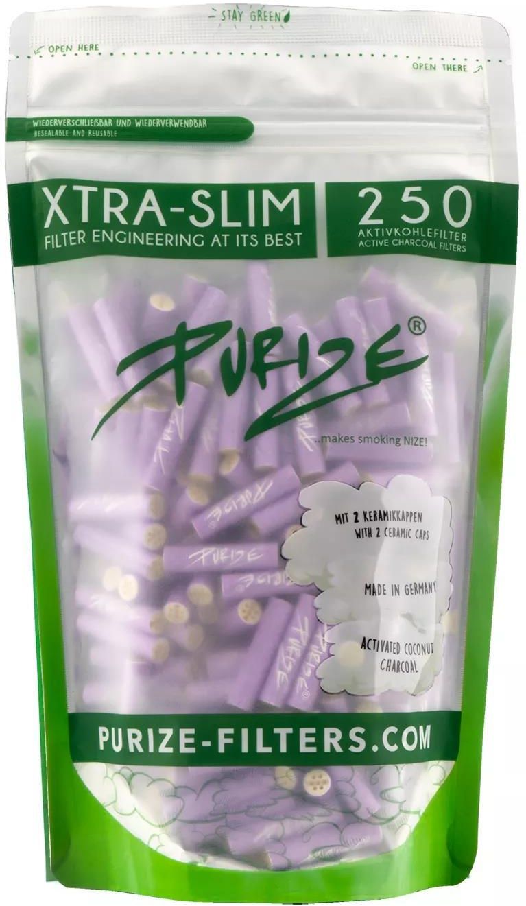 Filtry węglowe do jointów Purize XTRA Slim Lilac 250 szt. Filtyr z aktywnym węglem Purize XTRA Slim w efektownym, fioletowym kolorze. Wykończone po obu stronach ceramicznymi zaślepkami. Średnica filtra: 6 mm 250 szt. pakowane w wygodny woreczek zamykany strunowo.