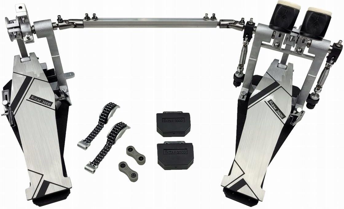 GRV Infinity Speed podwójna stopa (Direct+Chain) Podwójna stopa firmy GRV z serii Infinity Speed pozwala osiągnąć jeszcze większą prędkość oraz posiada ogromną ilość regulacji, dzięki którym każdy może dopasować ją do własnych potrzeb. Jedna z nielicznych stóp na rynku, w której w szybki i łatwy sposób możemy zmienić napęd bezpośredni (Direct Drive) na łańcuchowy. Specyfikacja: wymienny rodzaj napędu: Direct Drive lub podwójny łańcuch (wszystkie elementy w zestawie) dwustronny bijak (filc, plastik) możliwość rozdzielenia na dwie pojedyncze stopy dokręcana piętka (w zestawie) w zestawie dwa odważniki przykręcane na spód foot board'a gumowy zacisk zabezpieczający obręcz bębna przed uszkodzeniami gumowa, antypoślizgowa podkładka na platformie regulacja kąta pochylenia bijaków regulacja siły napięcia sprężyny z blokadą memory locki na bijakach łożyskowe zawieszenie sprężyny regulacja długości przegubu komplet kluczy do regulacji w zestawie