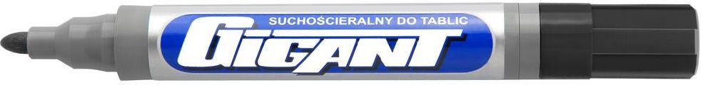 Marker tablicowy suchościeralny KAMET GIGANT K-1101 końcówka okrągła 1,5-2,5mm kol. czarny 1szt. Marker tablicowy KAMET GIGANT K-1101 to praktyczne narzędzie do pisania na tablicach suchościeralnych i innych gładkich powierzchniach. Dzięki dużemu rozmiarowi i pojemności tuszu jest idealny do intensywnego użytkowania. kolor: czarny grubość linii pisania: 1,5–2,5 mm końcówka: okrągła tusz: na bazie alkoholu, szybkoschnący, łatwo ścieralny zastosowanie: tablice suchościeralne, folia, szkło i inne gładkie powierzchnie cechy dodatkowe: nietoksyczny, długość pisania do 1500 m opakowanie: 1 sztuka