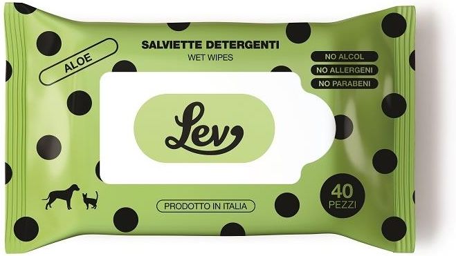 *Chusteczki nawilżane Lev* to wilgotne chusteczki z miękkiego materiału z dodatkiem aloesu, który koi i nawilża skórę. Wygodne zamknięcie pozwala na wielokrotne otwieranie opakowania. Chusteczki są pomocne w codziennym dbaniu o higienę pupila. Chusteczki pomogą w: * dbaniu o czystość łapek w okresie deszczowy (błoto), zimowy (sól i woda) oraz letnim (piach i pył), * utrzymaniu czystości fałdek i zmarszczek w których może gromadzić się brud i drobnoustroje u buldogów, pekińczyków, mopsów, bokserów, a także u psów starszych i chorych, * utrzymaniu czystości w przypadku biegunki, * oczyszczeniu sierści po wytarzaniu się w czymś nieświeżym, * usunięciu z sierści pyłków i nasion roślinnych oraz kurzu, co zmniejszy ilość alergenów w mieszkaniu, * zadbaniu o czystość sierści u zwierząt bojących się kąpieli, * wytarciu śliny u psów śliniących się, * czasie cieczki pozbyć się brudzenia i nieprzyjemnego zapachu. Nawilżane chusteczki pomogą zadbać o higienę w wielu sytuacjach. Należy pamiętać, że chusteczki nawilżane dla niemowląt nie powinny być stosowane do skóry i sierści zwierząt ze względu na inny odczyn Ph skóry (u ludzi 4,6-5,5, zaś u zwierząt 6,5-8,5). Użycie niewłaściwych chusteczek może podrażnić skórę. Chusteczki tylko do użytku zewnętrznego, nie należy stosować na otwarte rany, unikać kontaktu z oczami. Nie zawierają alkoholu, alergenów i parabenów.