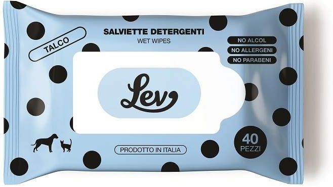 *Chusteczki nawilżane Lev* to wilgotne chusteczki z miękkiego materiału o pudrowym zapachu. Wygodne zamknięcie pozwala na wielokrotne otwieranie opakowania. Chusteczki są pomocne w codziennym dbaniu o higienę pupila. Chusteczki pomogą w: * dbaniu o czystość łapek w okresie deszczowy (błoto), zimowy (sól i woda) oraz letnim (piach i pył), * utrzymaniu czystości fałdek i zmarszczek w których może gromadzić się brud i drobnoustroje u buldogów, pekińczyków, mopsów, bokserów, a także u psów starszych i chorych, * utrzymaniu czystości w przypadku biegunki, * oczyszczeniu sierści po wytarzaniu się w czymś nieświeżym, * usunięciu z sierści pyłków i nasion roślinnych oraz kurzu, co zmniejszy ilość alergenów w mieszkaniu, * zadbaniu o czystość sierści u zwierząt bojących się kąpieli, * wytarciu śliny u psów śliniących się, * czasie cieczki pozbyć się brudzenia i nieprzyjemnego zapachu. Nawilżane chusteczki pomogą zadbać o higienę w wielu sytuacjach. Należy pamiętać, że chusteczki nawilżane dla niemowląt nie powinny być stosowane do skóry i sierści zwierząt ze względu na inny odczyn Ph skóry (u ludzi 4,6-5,5, zaś u zwierząt 6,5-8,5). Użycie niewłaściwych chusteczek może podrażnić skórę. Chusteczki tylko do użytku zewnętrznego, nie należy stosować na otwarte rany, unikać kontaktu z oczami. Nie zawierają alkoholu, alergenów i parabenów.