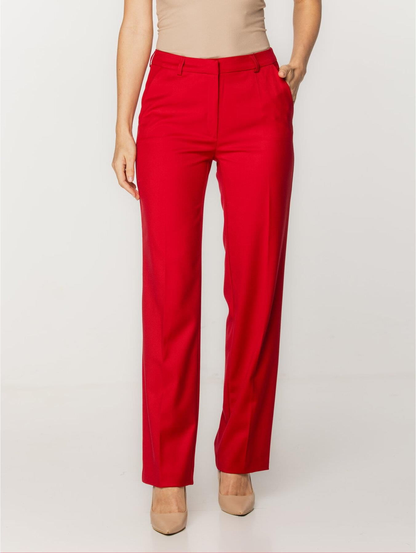 Klasyczne spodnie garniturowe Wybierając spodnie garniturowe marki Willsoor bez wątpienia przekonasz się do noszenia ich nie tylko od święta, ale również na co dzień! Spodnie zostały uszyte z delikatnej, miękkiej i elastycznej tkaniny podkreślającej sylwetkę, dzięki czemu nawet nie poczujesz, że masz na sobie tak niebywale elegancki strój. Proste nogawki posiadają zaprasowane kanty. W pasie znajdują się szerokie szlufki oraz ukryty guzik i zapięcie. Spodnie mają 2 kieszenie boczne. Tkanina: 63% wiskoza, 33% poliester, 4% elastan Kolor główny: czerwone o gładkiej fakturze Nogawki: proste Kieszenie: dwie boczne Producent: Willsoor Gwarancja: 24 m-ce Wyprodukowano w Polsce