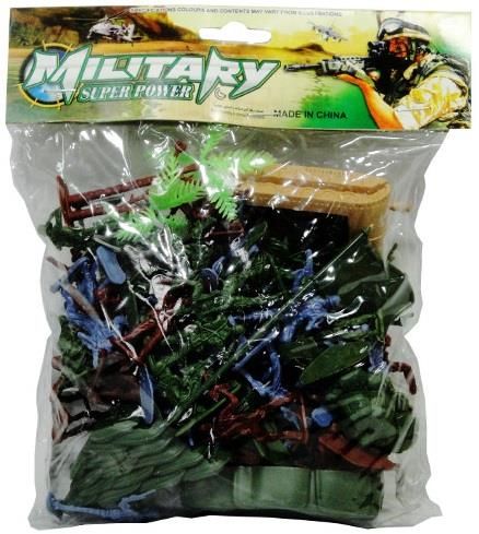 Zestaw figurek wojskowych. W zestawie m.in. figurki żołnierzy, samochody, samoloty, flagi, czołgi. W zestawie także znajduje się składana mata na której można rozkładać figurki. Produkt zapakowany w przezroczysty worek. Produkt dla dzieci powyżej 3 lat. Podane wymiary stanowią wymiar …