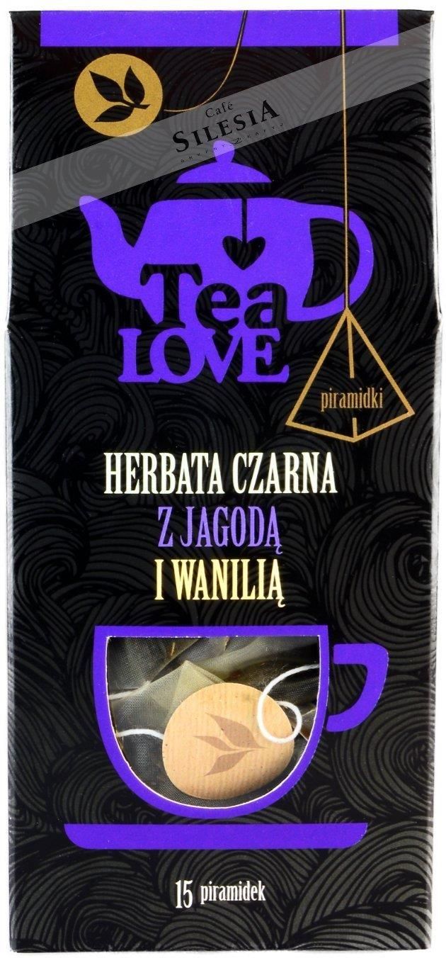 Herbata Tea LOVE czarna z jagodą i wanilią w piramidkach Opakowanie: 15 piramidek x 2g Ciekawa, słodka i odprężająca mieszanka dużych, aromatycznych liści czarnej herbaty i dużych kawałków jagód z nutą wanilii i kwiatów chabru. Poza nietuzinkowym smakiem, herbata ta ma pozytywny wpływ na funkcjonowanie naszego organizmu. Głównie dzięki wysokiej zawartości flawonoidów które hamują powstawanie wolnych rodników, działają przeciwzapalnie a także wspomagają układ krążenia, zapobiegają zawałom serca oraz obniżają poziom cholesterolu. Herbata jest zapakowana w wygodne w użyciu piramidki po 4g każda, dzięki którym jej przygotowanie jest niezwykle łatwe. Wystarczy włożyć piramidkę do filiżanki, zalać wodą o temperaturze 100°C i zaparzać 2-3 min. Skład: liście czarnej herbaty, jagody, wanilia, kwiaty chabru