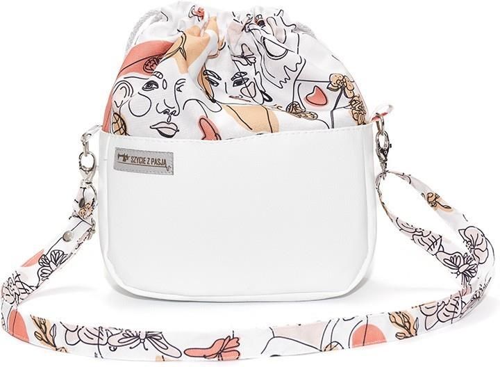 Torebka Sakiewka Biała z Motywem Artystycznych Twarzy – Handmade Sosnowiec