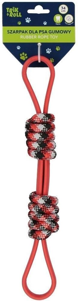 Trik&Roll Zabawka Dla Psa Szarpak 34cm 560706 Szarpak dla psa TRIK&ROLL to elastyczna zabawka wykonana z miękkiej, wytrzymałej gumy, wyposażona w dwa uchwyty, jest bezpieczna dla psów, wolna od BPA, i nadaje się do recykling. Zabawka przeznaczona do aktywnej zabawy, takiej jak przeciąganie, aportowanie czy trening posłuszeństwa. Jest to idealna zabawka dla psów, które lubią przeciąganie i gryzienie, a jednocześnie potrzebują bezpiecznego i miękkiego materiału dla zębów. Zabawka idealna do przeciągania, aportowania oraz jako gryzak. Zabawka wykonana jest z gumy z zaplecionymi supłami z bawełnianego sznurka. Szarpak w kolorze czerwonym. wymiary produktu dł. cm 34 cm, waga produktu kg 0,15 kg