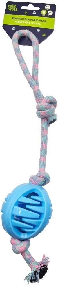 Trik&Roll Zabawka Dla Psa Szarpak z Piłką 40cm 560710 Szarpak jest to idealna zabawka dla psów, które lubią przeciąganie i gryzienie, a jednocześnie potrzebują bezpiecznego i miękkiego materiału dla zębów. Zabawka idealna do przeciągania, aportowania oraz jako gryzak. Zabawka wykonana jest z bawełnianego sznurka z supłami zakończona gumową piłką . Szarpak w kolorze błękitno-różowym. wymiary produktu dł. cm 40 cm, waga produktu kg 0,12 kg
