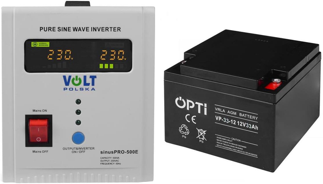 Volt Polska Zestaw Volt Sinus Pro 500 E 500VA/350W + akumulator Volt OPTI VRLA AGM 12V 33 Ah (3SP050012E+6AKUV033AG) Sosnowiec
