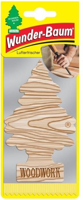 WUNDER BAUM Woodwork Przenieś się myślami do stolarni, gdzie w powietrzu unoszą się nuty rześkiego cedru, słodkiego drzewa sandałowego i bogatego, ciepłego mahoniu. Choinki Wunder Baum są znane i dostępne na całym świecie i cieszą się ogromną popularnością. W ofercie znajduje się kilkanaście rodzajów drzewka o różnych nutach zapachowych, spośród których każdy z pewnością wybierze odpowiedni zapach dla siebie. Właściwości : najważniejszym walorem drzewek jest ich wydajność i utrzymujący się do ośmiu tygodni aromat skutecznie neutralizują nieprzyjemne zapachy z dymu tytoniowego i wilgoci produkt w formie celulozy z elastyczną gumką szeroki wybór nut zapachowych 2 SZTUKI